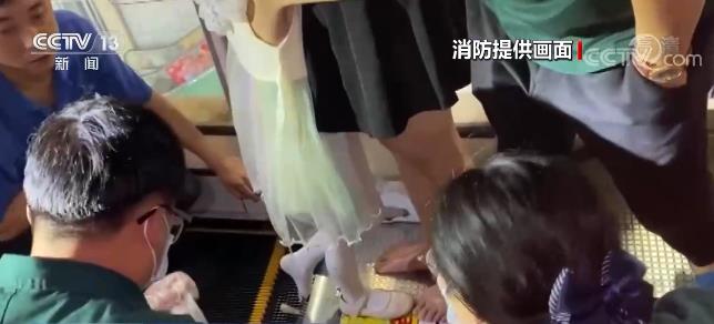 消防员立即和电梯维护人员合力破拆电梯,但由于女孩的脚趾被卡得很深,不能贸然取出,只能先行拆除部分电梯梳齿板,随后再连同梳齿板一起取出。