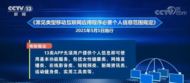 《规定》特别指出,13类APP无须用户提供个人信息即可使用基本功能服务,包括女性健康类、网络直播类、在线影音类、短视频类、新闻资讯类、运动健身类、实用工具类等。