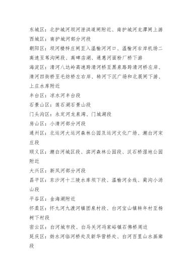 图为北京市各区易发生市民聚集河湖条段(参考)。北京市水务局供图