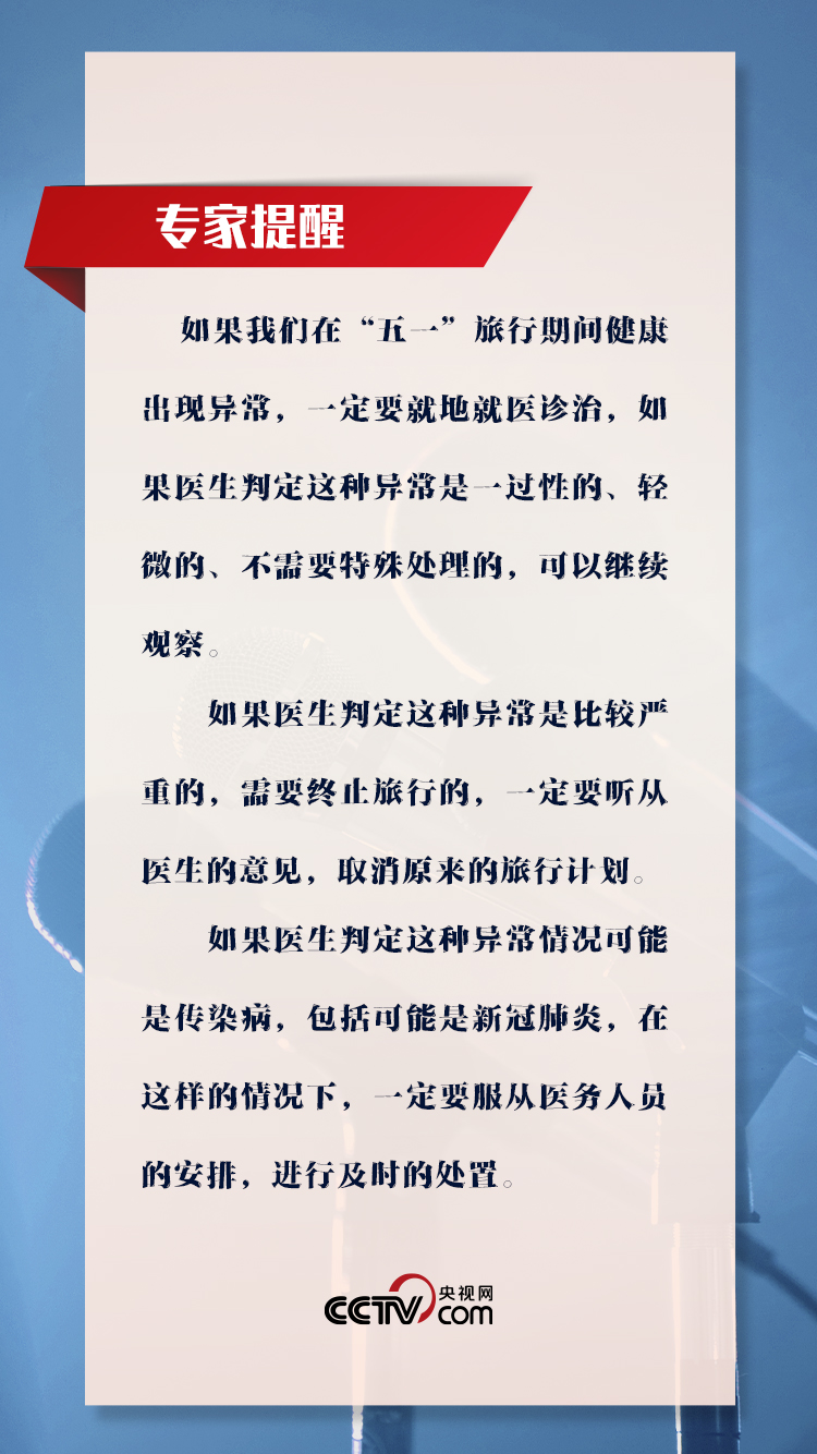 旅行期间,尽量避免到人群聚集、空间密闭、通风较差场所活动。持续做好自我健康监测,出现可疑症状时,及时就诊,并做好防范感染他人的措施。已接种过第1剂新冠疫苗者,尽量不要因为旅行影响到第2剂的接种。