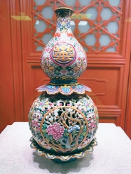 “清代,皇帝在年节或者举行重大典礼活动时会赏赐王公大臣瓷瓶,其中以玉堂春瓶最具代表性。”吕成龙说。乾隆将“礼物”的规格定了——从宫中藏瓷中选定52件琢器和164件圆器当样品。展览中,历朝的“礼物”摆成一排,每位皇帝的喜好一目了然。