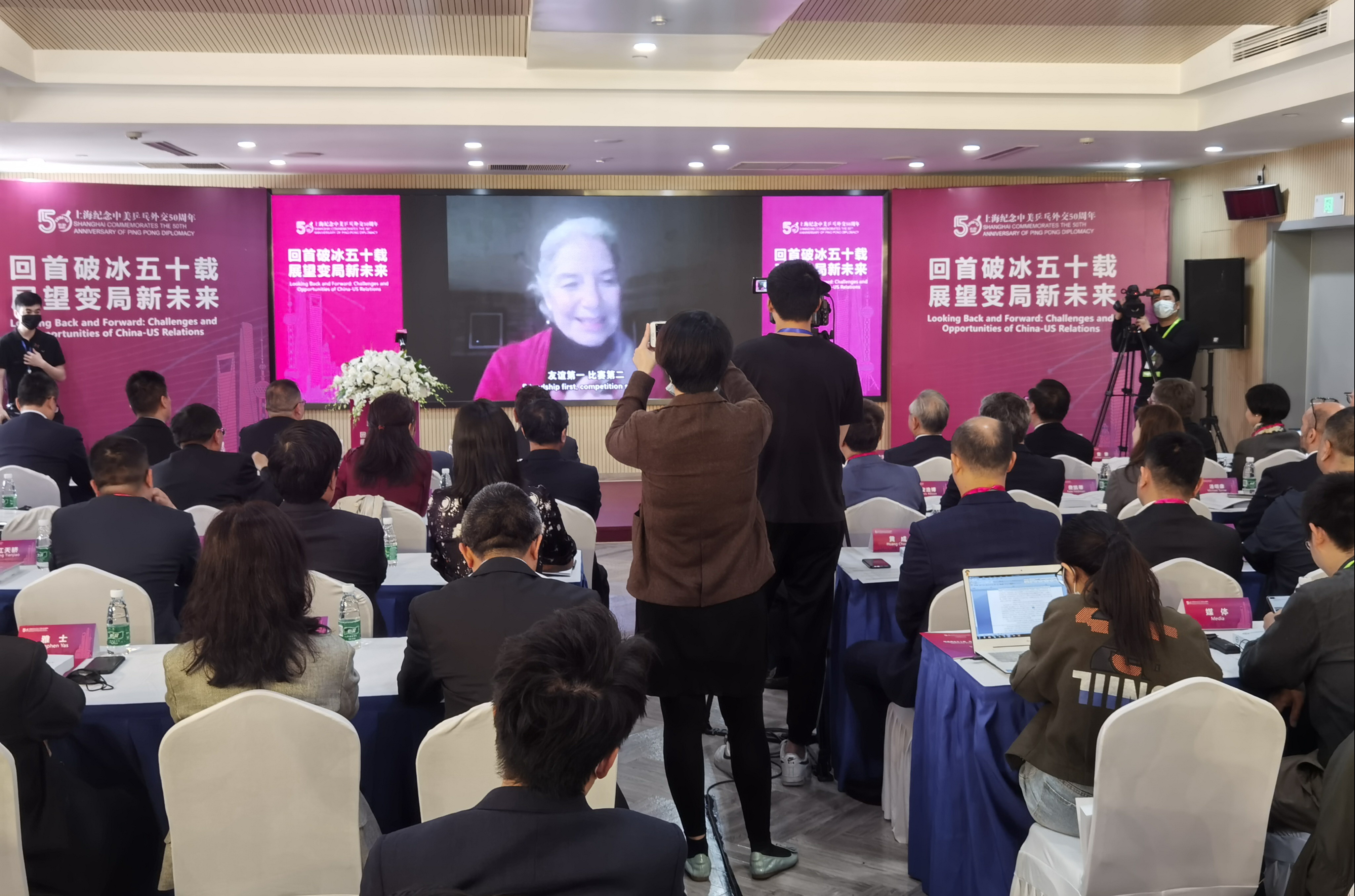 美中关系全国委员会副会长简·巴里斯(中文名“白丽娟”)是当年中美“乒乓外交”的亲历者。她在从美国发来的视频演讲中回忆,“友谊第一、比赛第二”,是1972年回访美国的中国乒乓球运动员率先讲的,到那次访问临近结束之时,包括连一句中文都不会的美国乒乓球选手以及安保人员,所有人都学会了这句话:“友谊第一、比赛第二”。