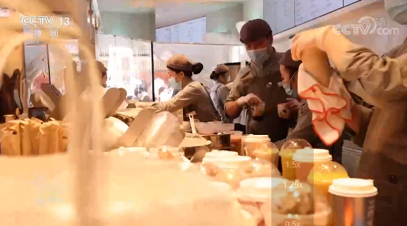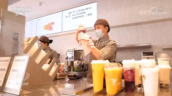 下午四点,茶饮店里的客人依然络绎不绝,饮品一杯一杯出炉,订单量还是没有下来。虽然到了换班的时间,张瀛心并没有离开岗位,新式茶饮带给她很多的快乐,她希望能让更多的顾客,更快地分享到这杯中的幸福。