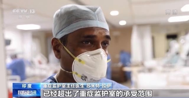 重症监护室主任医生 苏米特·拉伊:现在我们医院的患者太多,已经超出了重症监护室的承受范围。我们在病床之间放了担架,我们的呼吸机用完了,我们正在用麻醉机给病人供氧。