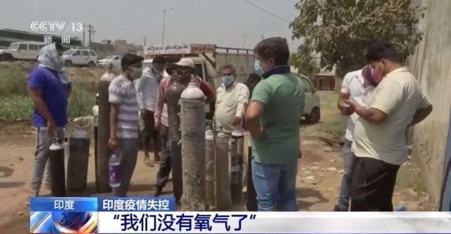 不仅是新德里,在印度人口最多的北方邦,农村地区和一些小城市也都面临严重的氧气短缺,许多医院张贴告示建议患者家属自己协调医用氧气。在印度农村的制氧厂外,提着气瓶的民众排起长龙,但是这里也没有氧气了。