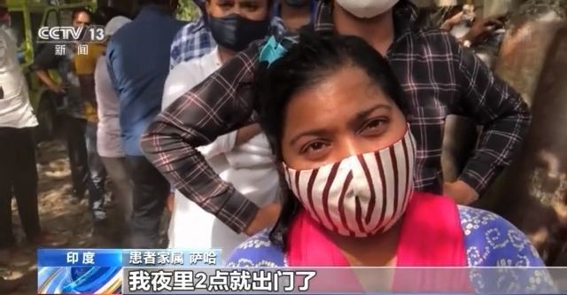 患者家属 萨哈:我夜里2点就出门了,德里没有氧气供应。我们奔波了好久,三四点到了这里,结果这里排大队。我说先救救我母亲,他们告诉我要拿医生或医院的处方来。我妈妈病情危急,过去两天我们跑了很多医院找床位。