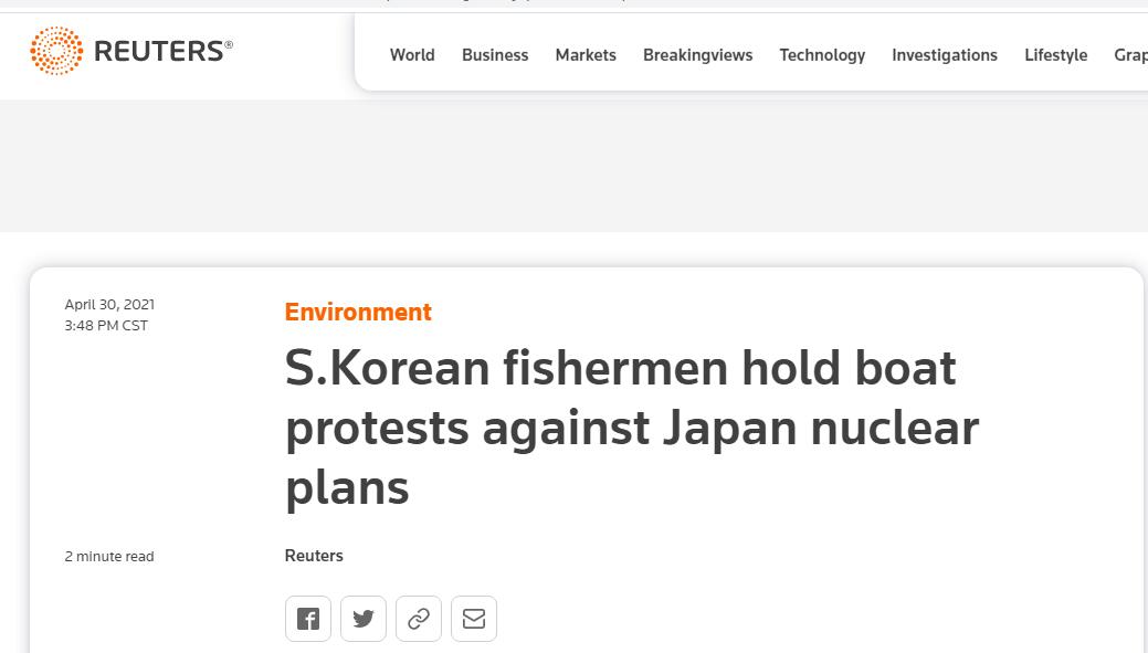 报道提到,渔村村长Park Re-seung说,“我父亲把这片海域留给了我,我要把它传给我儿子,他也在打鱼。”Re-seung还提到,“日本为什么要这么做?他们怎么能对大海做这样的坏事?他们不吃鱼吗?”