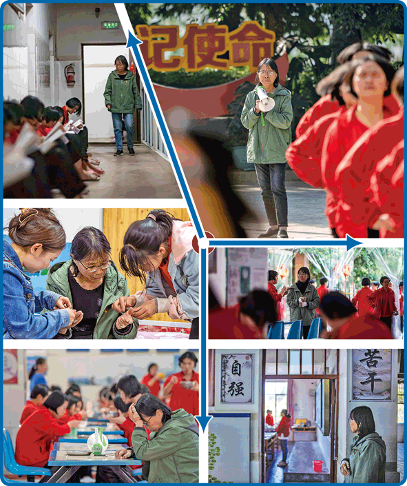 清晨5点15分,张桂梅忍着疼痛从床上爬起来。在宿管员的搀扶下,从她所住的女生宿舍楼三楼,一步步挪到楼下,再坐着电动车,来到两三百米外的教学楼。