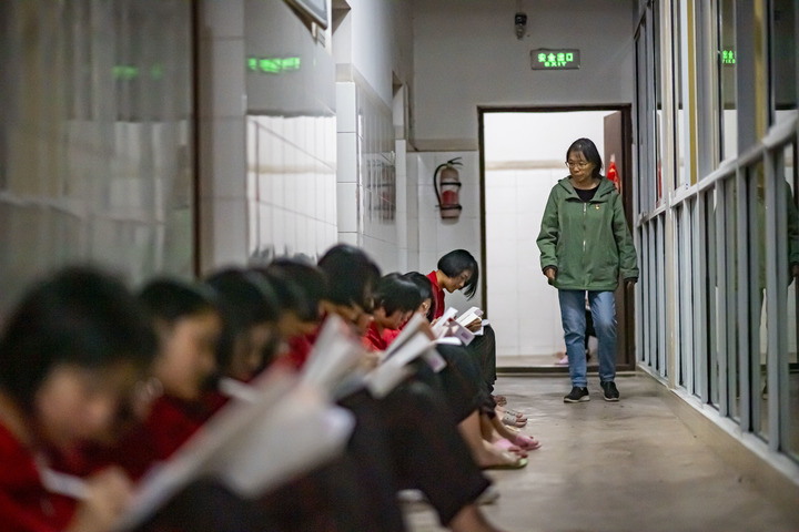 在学生起床早读之前,她要把教学楼楼道的灯一盏盏打开。“女孩子怕黑,山上蛇也多,我先把灯打开,姑娘们就能安心来早读。”张桂梅说。
