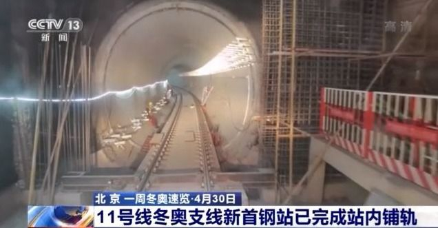 4月30日,11号线的新首钢站已完成站内铺轨,铺轨工作正逐步向北延伸,全线预计今年年底前通车。