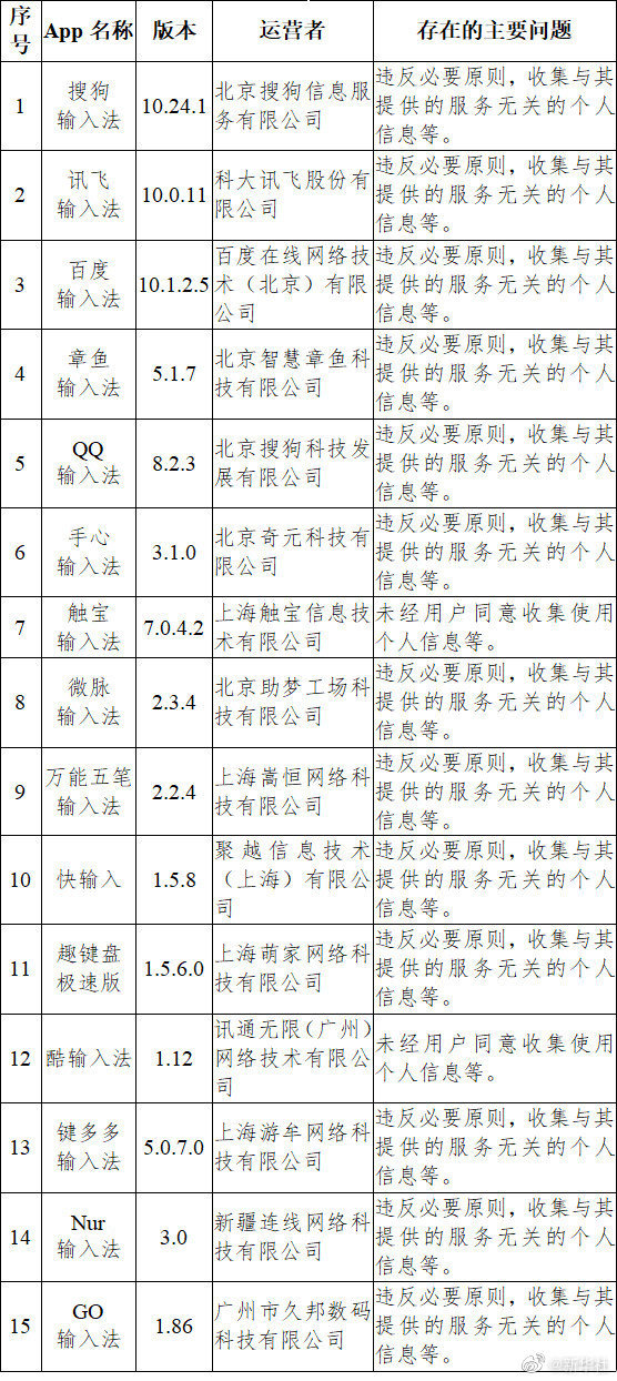 #国家网信办要求33款违法违规App整改#【这#33款App违法违规收集使用个人信息#!看看你中招了吗?】国家网信办1日通报,依据法律和有关规定,对输入法、地图导航等常见类型公众大量使用的部分App的个人信息收集使用情况进行检测,发现搜狗输入法、讯飞输入法、高德地图、百度地图等33款App违法违规收集使用个人信息。国家网信办要求相关App运营者针对检测发现的问题于通报发布之日起10个工作日内完成整改,并将整改情况上报,逾期未完成整改的将依法予以处置。(记者王思北)