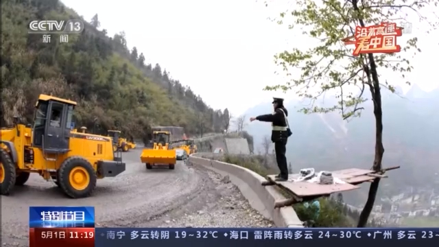 这张是矮寨交警们当年执勤的照片,他们站在隔空搭建的木板上指挥交通,脚下就是深不见底的悬崖深谷。