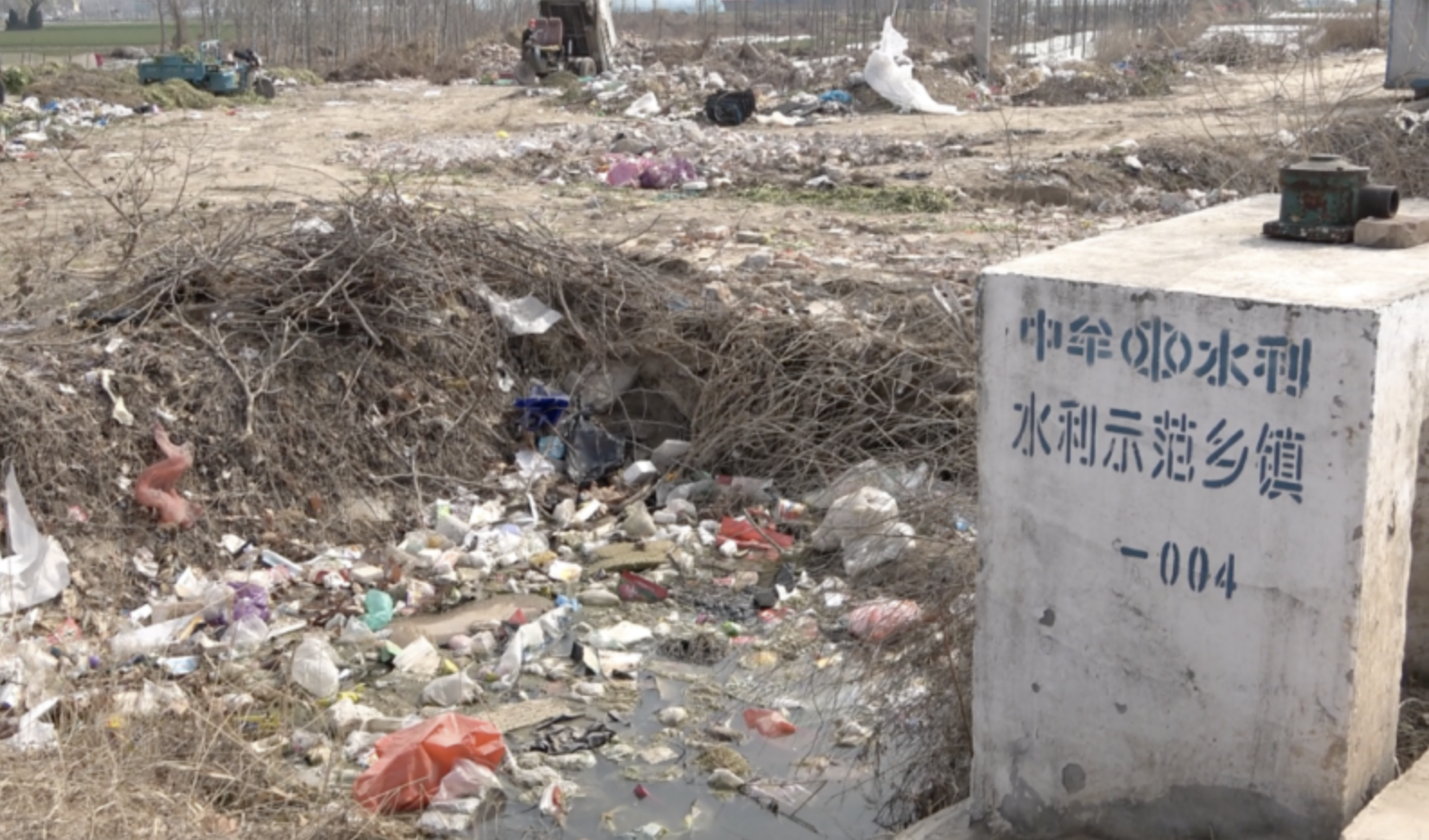 引黄灌溉渠内堆满垃圾。图片来源:生态环境部