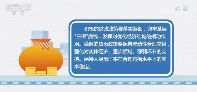 在宏观政策方面,会议要求要保持宏观政策连续性、稳定性、可持续性,不急转弯。积极的财政政策要落实落细,兜牢基层“三保”底线,发挥对优化经济结构的撬动作用。稳健的货币政策要保持流动性合理充裕,强化对实体经济、重点领域、薄弱环节的支持。保持人民币汇率在合理均衡水平上的基本稳定。