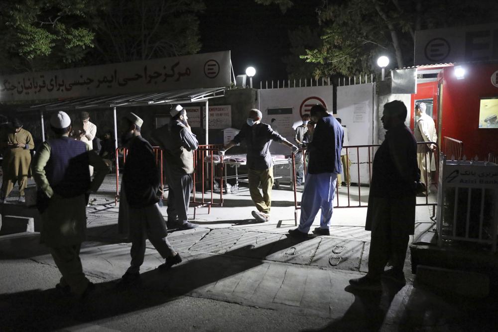 △4月30日,阿富汗民众在医院外等待看望在当日发生的汽车炸弹袭击中受伤的亲属(图片来源:美联社)