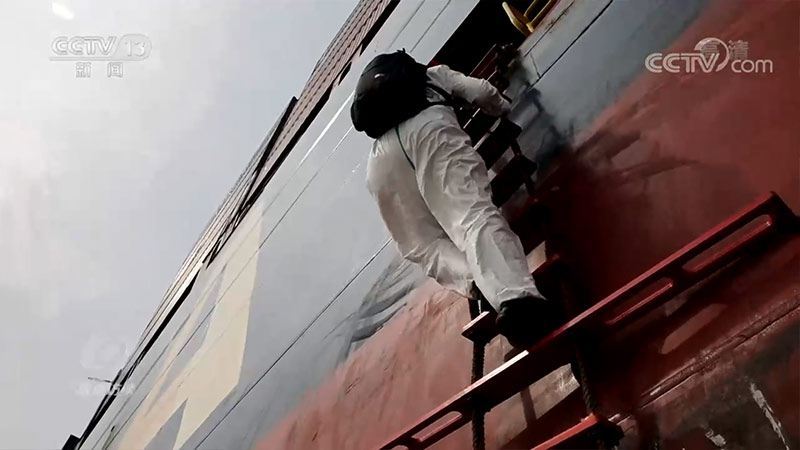 疫情发生以来,周弘文和同事们的工作始终没有中断。密不透风的防护装备,让攀爬引航梯变得更加困难。目前全世界的引航员在登船和离船的时候,仍然要靠搭在船舷外的引航梯。它由棕绳和木板编织而成,短的五六米,长的有十几米。这是风险很高的一个环节,稍有不慎就有可能造成伤亡。