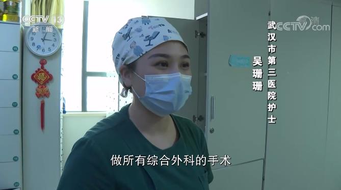 武汉市第三医院护士 吴珊珊:我是武汉市第三医院光谷院区手术麻醉科的一名护士,我们平时就负责做所有综合外科的手术。现在回到之前的手术量了,今天做了两台腔镜,手术还比较顺利。我们医院当时是武汉市第一批接到疫情(通知)被征用的医院,当时征用了以后,就是所有的医院,不分科室,全体人员一起上。