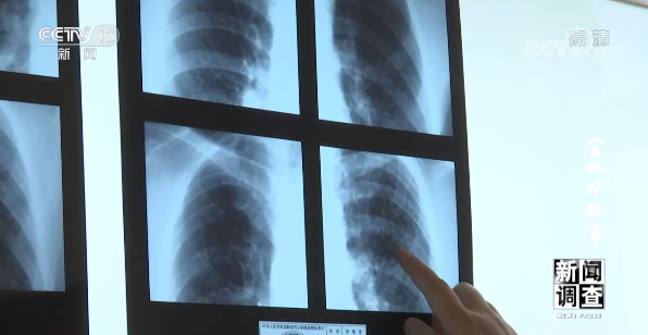 在职业病防治所,医生向我们展示了尘肺病患者对照国家标准的X线胸片,我们可以看到尘肺结节在胸片上的样子。