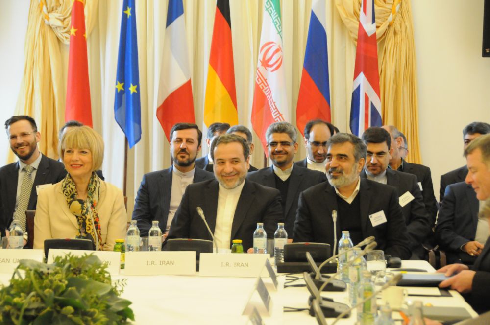 2019年3月6日,在奥地利维也纳,欧盟对外行动署秘书长施密特(前排左一),伊朗副外长阿拉格希(前排左二)及俄罗斯、英国、法国、德国相应官员出席伊朗核问题全面协议联合委员会会议。新华社记者刘向摄