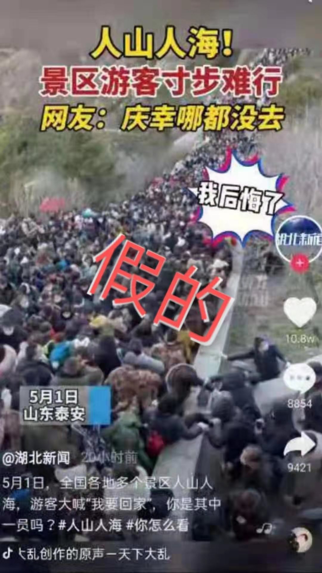 2021年5月1日,有部分新闻媒体、自媒体等,陆续发布了一些关于“五一”假期首日泰山景区“人山人海”“游客大量聚集”等视频、图片、文字、音频。