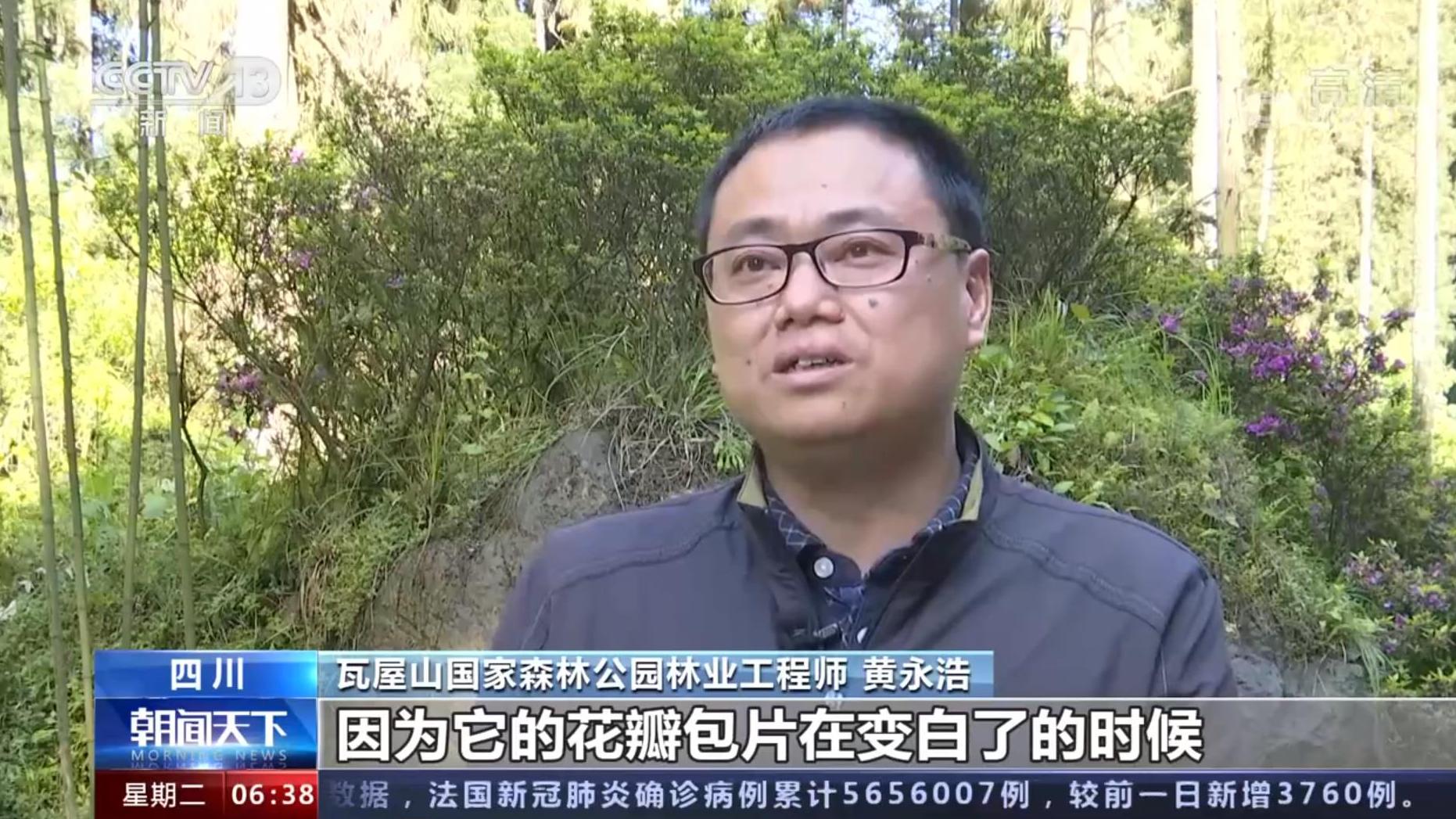 瓦屋山国家森林公园工作人员 祁明霞:瓦屋山的杜鹃花有47个种类,它的花期是每年的春分至每年的六月初,且高山杜鹃是非常耐寒的。瓦屋山还有独有的一些杜鹃花,就是寄生杜鹃和问客杜鹃,这个问客杜鹃,它的名字是非常有意思的。就是说我是开得最晚的(杜鹃) 问游客你怎么还不来呢,你再不来我都已经开过了。