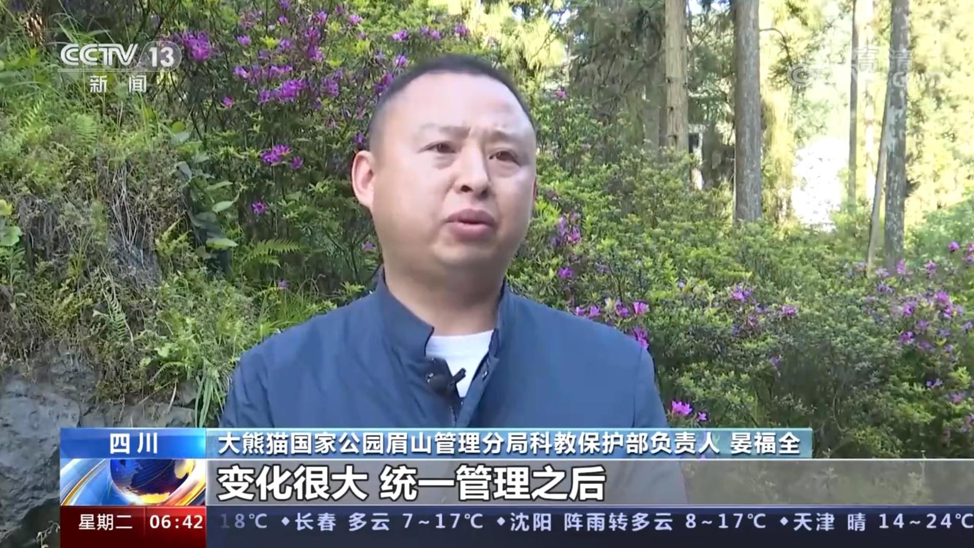 大熊猫国家公园眉山管理分局科教保护部负责人 晏福全:变化很大,统一管理之后,现在这个管理的力量已经非常完善了。成立大熊猫国家公园之后,完全是按照最严格的保护。