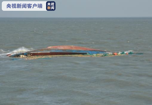 在搜救的过程中,5月3日早上,翻扣的渔船苏海门渔01728沉没。(总台央视记者 郭臻 )