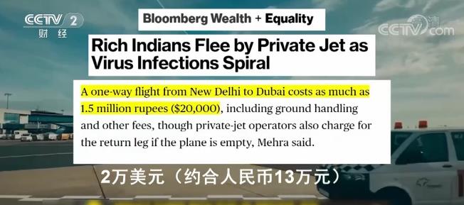 印度媒体报道说,印度富人逃离最多的目的地是阿联酋和英国。有包机公司指出,在航班停飞之前,他们前往阿联酋迪拜的包机一天可达12班,票价涨到了2万美元,约合人民币13万元,前往英国的包机费用也一度涨到14.86万美元,约合人民币96万元。