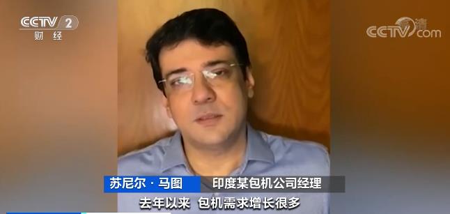 印度某包机公司经理 苏尼尔·马图:去年以来包机需求增长很多,很多企业高管、富人前往英国等欧洲国家。商务包机、救护包机、直升机等也在增加。