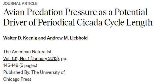 △学术期刊《美国博物学家》2013年1月刊载的论文首次发现了17年蝉数量同鸟类种群数量之间存在动态变化关系。