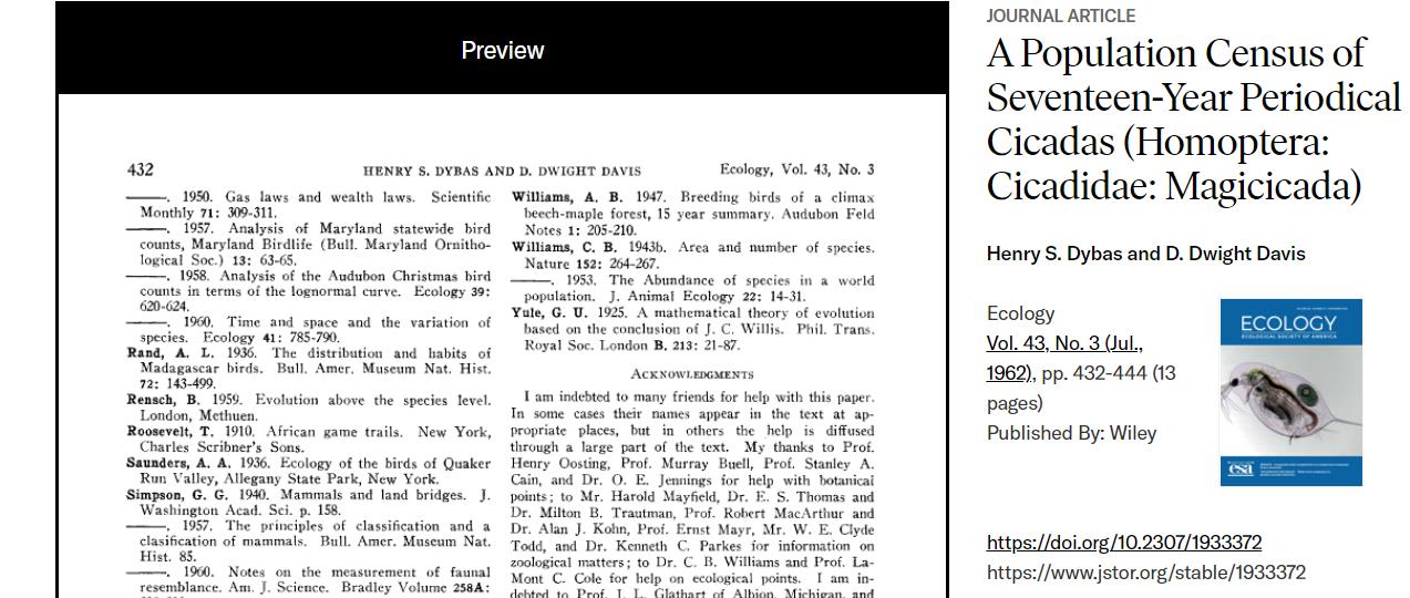 △学术期刊《生态学》1962年刊登的一项研究,揭示了周期蝉能够为生态环境提供大量的能量。