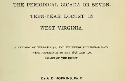 △1900年,由A.D Hopkins所著的论文中,提及了1634年北美移民发现的周期蝉。(图片来源:西佛吉尼亚大学)