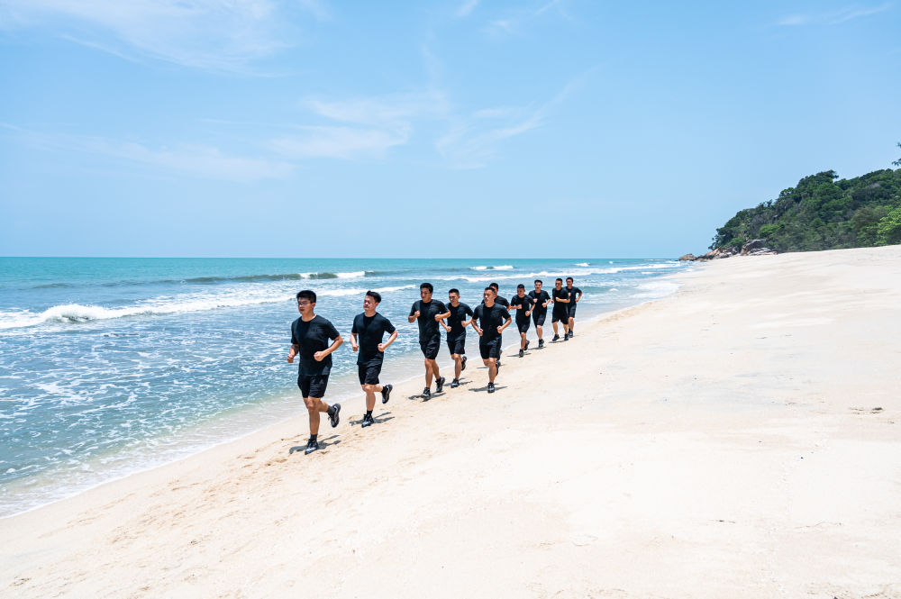训练结束时,他们身上已经分不清哪些是汗水、哪些是海水。
