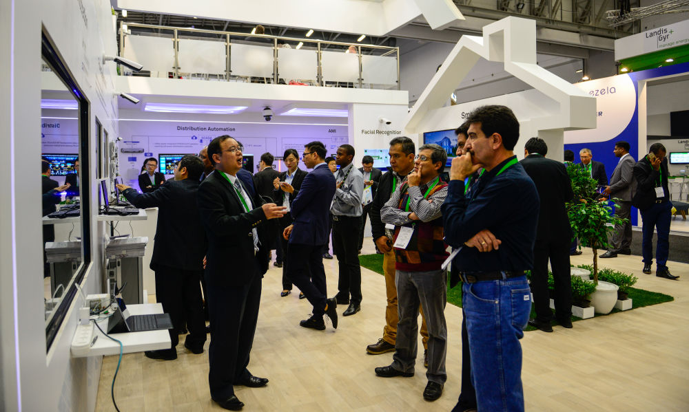 2017年5月17日,在南非开普敦,参观者在中国华为公司展台参观。新华社记者翟健岚摄
