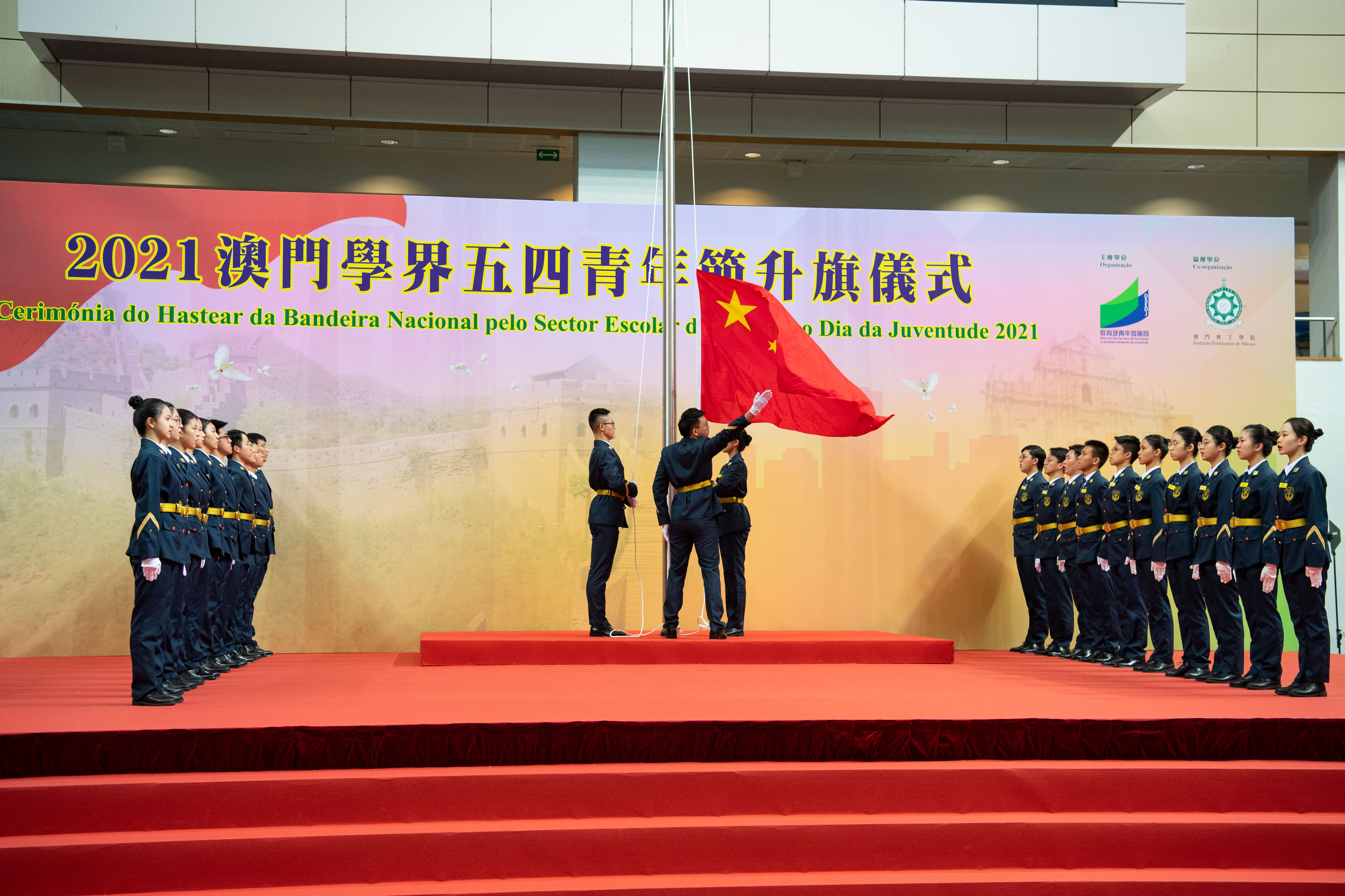 新华社澳门5月4日电(记者郭鑫)澳门学界4日一早在理工学院体育馆举行青年节升旗仪式,隆重纪念五四运动102周年。来自全澳各高等院校、中小学、青年社团的代表约700人参加。