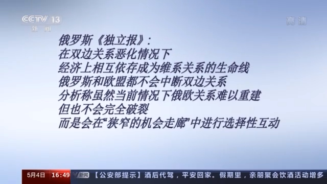 数据显示,2020年1月至10月,欧盟与俄罗斯贸易额占俄外贸总额近四成,而欧盟对于俄罗斯的能源依赖仍在。俄罗斯《独立报》就指出,在双边关系恶化情况下,经济上相互依存成为维系关系的生命线,俄罗斯和欧盟都不会中断双边关系。分析称,虽然当前情况下俄欧关系难以重建,但也不会完全破裂,而是会在“狭窄的机会走廊”中进行选择性互动。