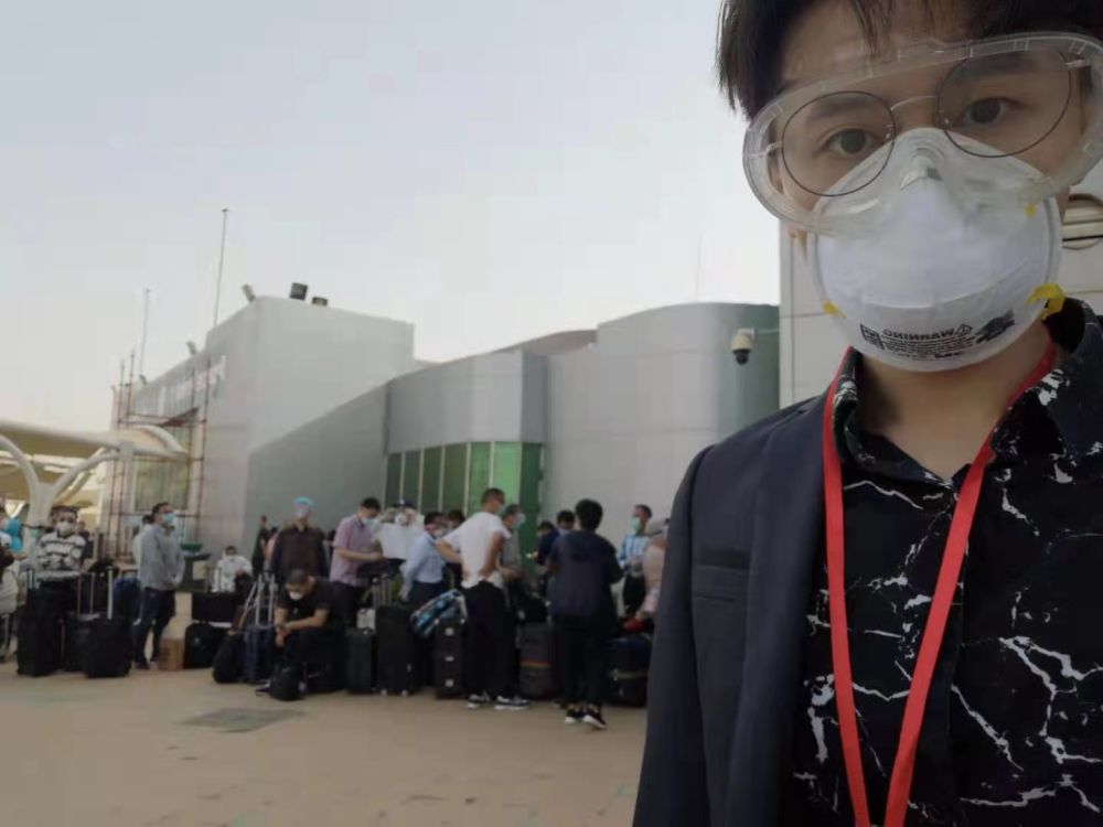(2020年6月11日,甘俊晨赴喀土穆国际机场协调189名中国滞留在苏人员乘临时航班回国,图片由受访者提供)