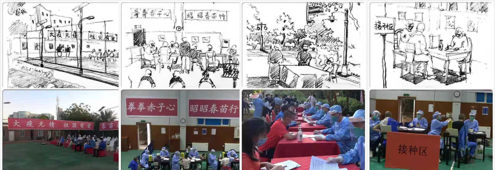 手绘接种现场漫画图