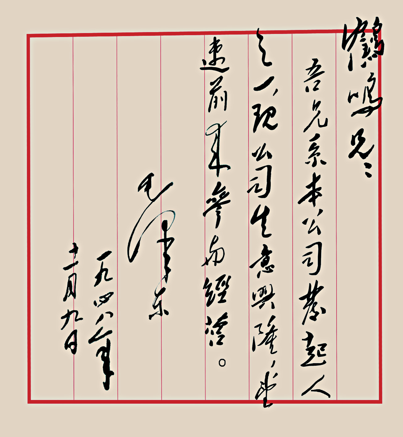 新华社北京5月4日电(记者饶力文、关开亮)5月4日,新华社五四青年节微动画片《28岁的你》重磅上线。在这部短片中,让网友眼前一亮的,是一封“神秘来信”:“吾兄系本公司发起人之一,现公司生意兴隆,望速前来参与经营。”信的落款为“毛泽东”。