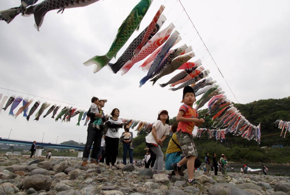 5月5日是日本儿童节。资料图片显示,日本儿童节有挂鲤鱼旗的风俗,祈愿孩子出人头地。(新华社/法新)