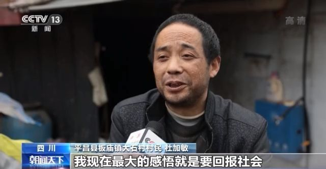 平昌县板庙镇大石村村民 杜加敏:我现在最大的感悟就是要回报社会。因为当初我被火烧之后,我周边的父老乡亲,金钱、物资、言语,都给我了不少帮助。我现在也没有什么回报的,就是我把我能够帮得到的,我来帮他们都共同往小康道路上走。