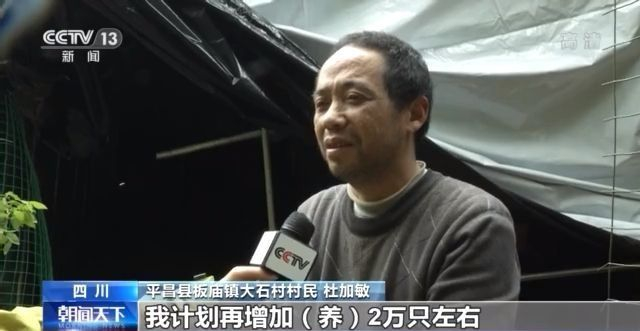 平昌县板庙镇大石村村民 杜加敏:现有的规模设施能够养1万5千只左右,我就再增加计划养2万只左右。毛收入一年最低60多万,这是保守说法。