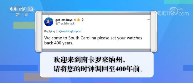 有网友调侃说,这像是回到了奴隶制时代,“欢迎来到南卡罗来纳州,请将您的时钟调回至400年前。”“我们这个国家现在依然存在更多这样的行为。这是白人特权!嘘……这“不是种族主义”。还有网友无奈地调侃说,“这就是美国”。