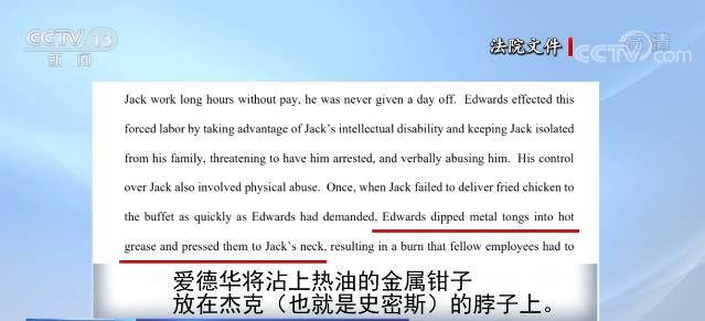 法庭文件显示,2009年至2014年间,爱德华兹强迫史密斯每周无薪工作超过100个小时,还经常用拳头、皮带等殴打史密斯。有一次,爱德华兹甚至将沾上热油的金属钳子放在史密斯的脖子上。史密斯被诊断为认知发育迟缓,爱德华兹正是利用这一点强迫他劳动,并阻止他与家人见面。直到2014年被一名同事的亲戚曝光,史密斯才得以获救。
