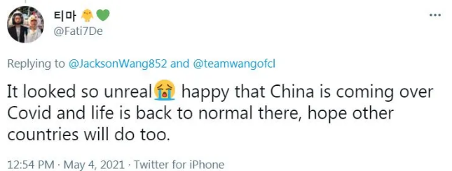 网友Fati7De则在看到中国举办音乐节的消息时说:“画面看起来好不真实。很高兴中国控制了疫情,生活也逐渐恢复正常,希望其他国家能这样。”