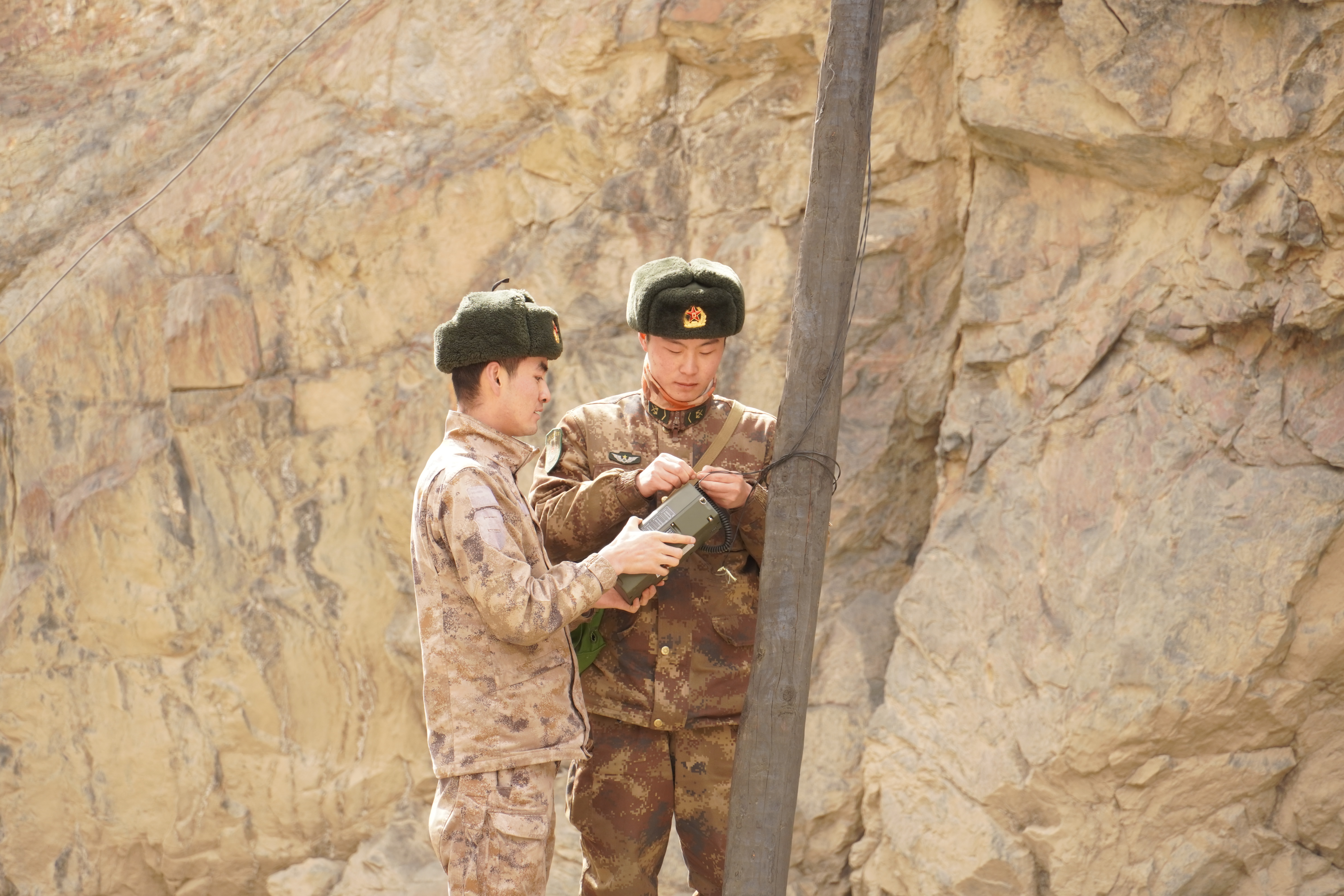 通信兵下士何有明和下士于广斌坚持巡线。“通信业务是连队的耳目,对于边境守防至关重要,只有仔细巡查,才能保障通信畅通。”何有明说。