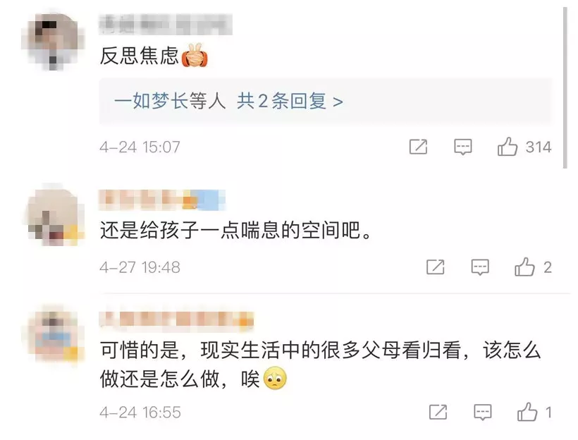 也有不少观众表示剧中的矛盾和戏剧冲突过于集中,紧绷的剧情让他们感到“窒息”“紧张”“透不过气”。“看过剧后立刻被剧中充斥的焦虑气氛感染,隔着屏幕都感到紧张”“小孩焦虑,大人焦虑,这部剧让大家一起焦虑”等。