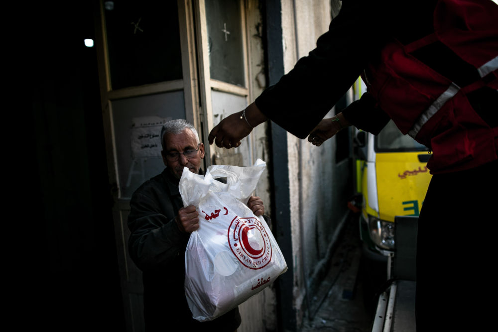 2020年2月19日,在利比亚的黎波里,利比亚红新月会的工作人员为流离失所者准备救济物资。新华社发(阿姆鲁摄)