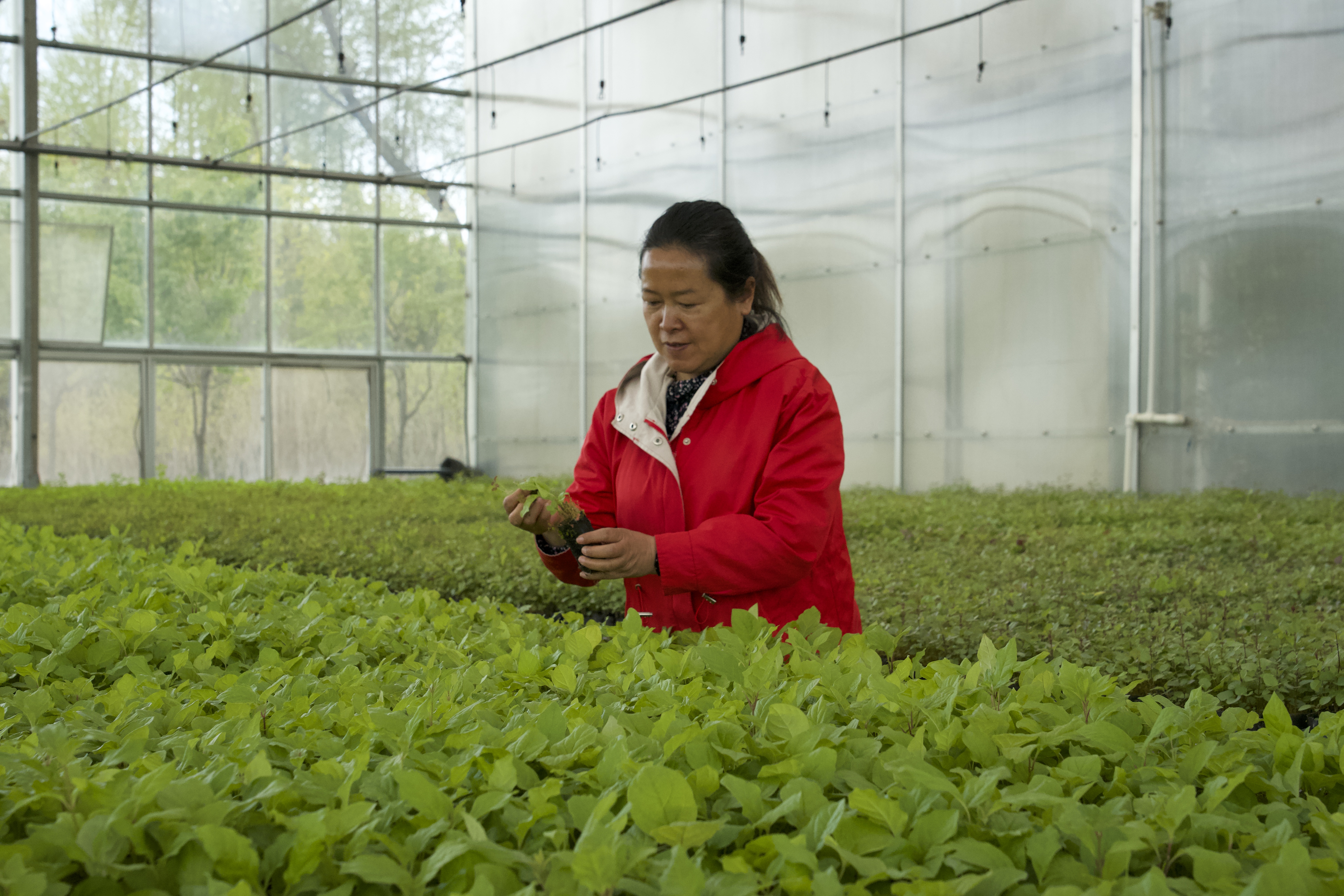 在西宁林科所的智能温室内,空气清新,温度宜人,一株株丁香幼苗吐露枝叶,茁壮成长。西宁林科所工程师毛英拨开花盆里的泥土、杂草,仔细观察着丁香的生长情况。