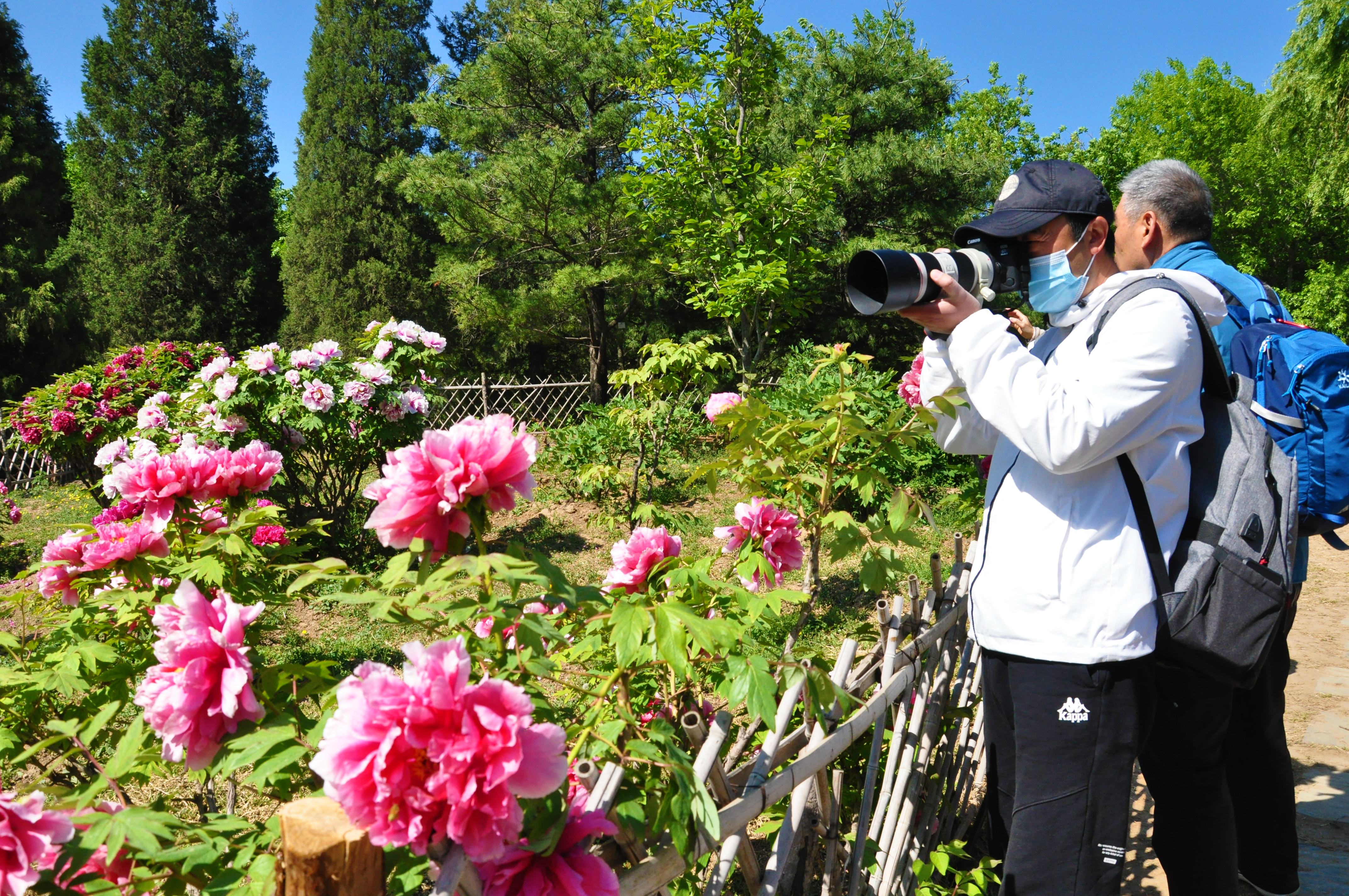 游客在北京植物园拍摄牡丹。(北京市公园管理中心供图)